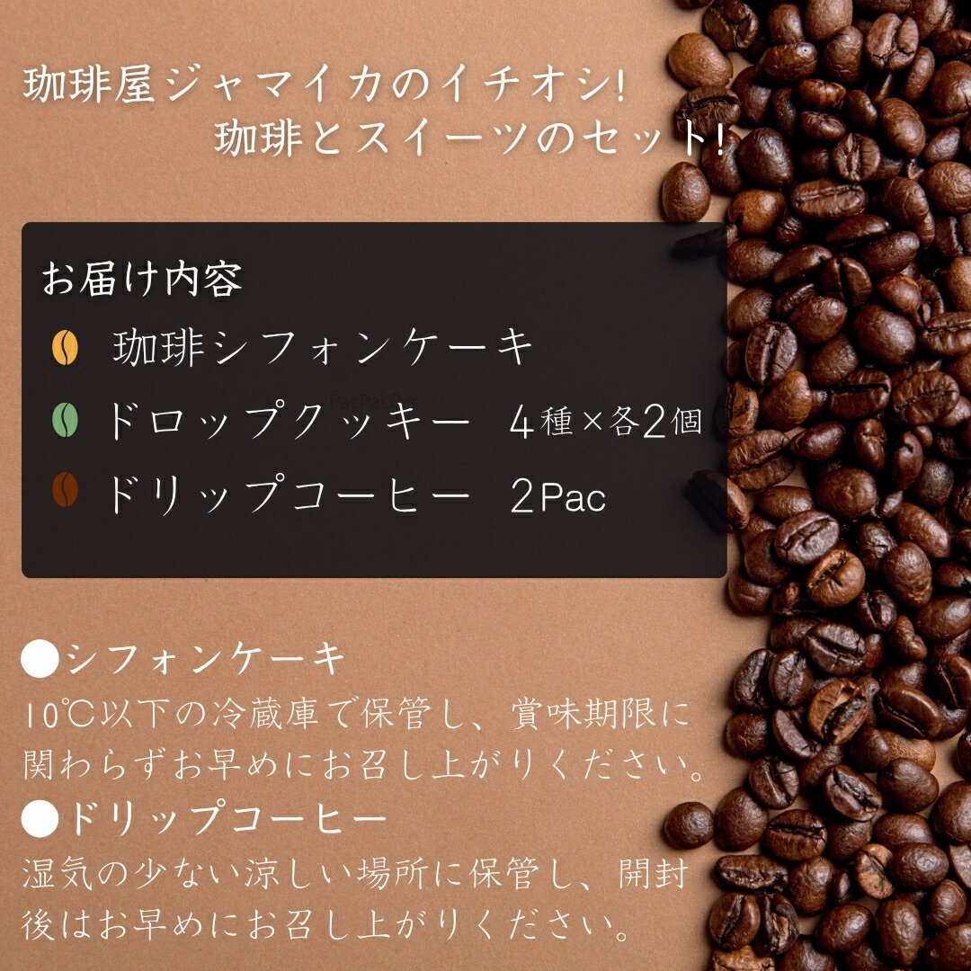 【ふるさと納税】珈琲シフォンケーキとドロップクッキー4種とドリップコーヒー2Pのセット スイーツ シフォンケーキ カフェ クッキー コーヒー 珈琲 お取り寄せ 小松市 石川県 024032【珈琲屋ジャマイカ】