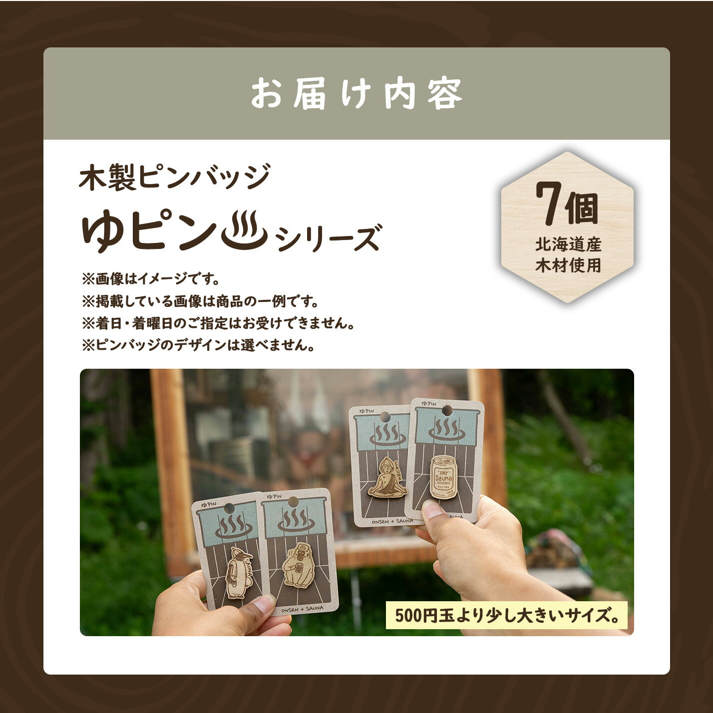 - 【ふるさと納税】【北海道ニセコ町】クマゲラ製作 木製ピンバッジ ゆピン シリーズ7個 (北海道産木材使用)【50005】