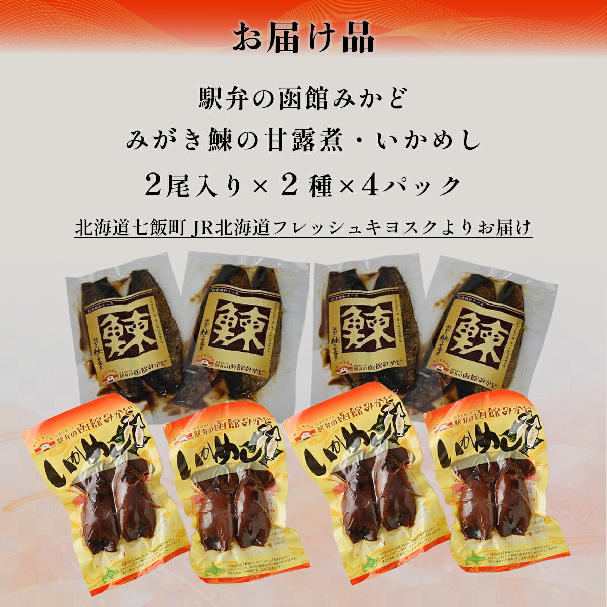 - 【ふるさと納税】みがき鰊の甘露煮4パック 駅弁の函館みかどいかめし4パックセット 【ふるさと納税 人気 おすすめ ランキング いかめし イカ 米 パック 駅弁 北海道 七飯町 送料無料】 NAAI009