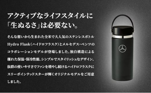 - Mercedes-Benz × Hydro Flask ステンレスボトル 16 oz Wide Mouth Black メルセデス ベンツ [№5346-1561]