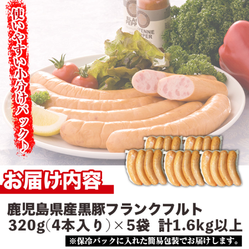 - No.459 鹿児島県産!黒豚フランクフルト(計1.6kg以上・4本入×5袋)【コワダヤ】