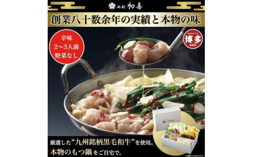 - 【九州銘柄産 黒毛和牛】博多もつ鍋 西新初喜の辛味2~3人前 野菜なし【離島配送不可】