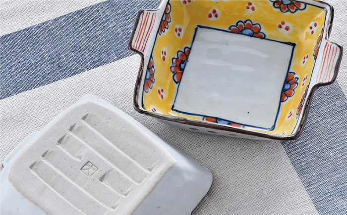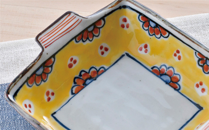 【波佐見焼】赤花黄ダミ 取っ手付き角小鉢 2点セット【大桂工房】 [GD33]