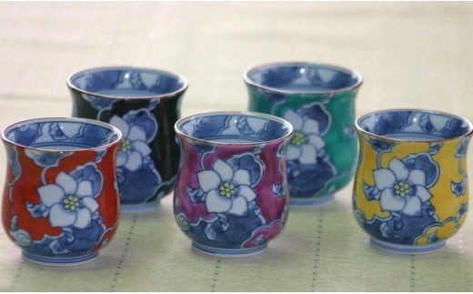 - 【伊万里焼】彩り唐花湯呑 5色セット 032-H327