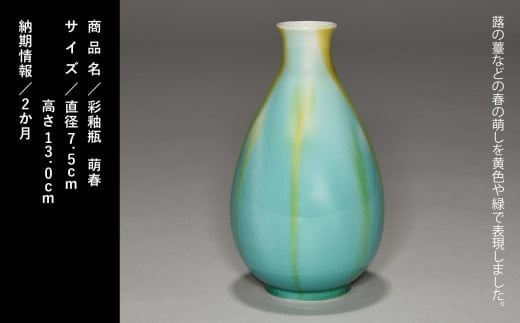 九谷焼「彩釉瓶・萌春(ホウシュン)」四代 德田八十吉 花入 花瓶