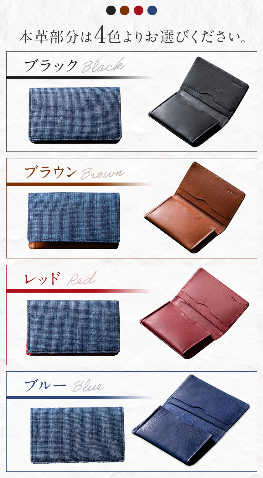 - 【ふるさと納税】本藍染め 名刺入れ 選べるカラー (本革部分) ブラック ブラウン レッド ブルー 桐箱入り 岩田織物工房【民芸品 工芸品 本藍染め 本革 名刺入れ 雑貨 日用品】民芸品・工芸品・本藍染・名刺入れ《90日以内に出荷予定(土日祝除く)》
