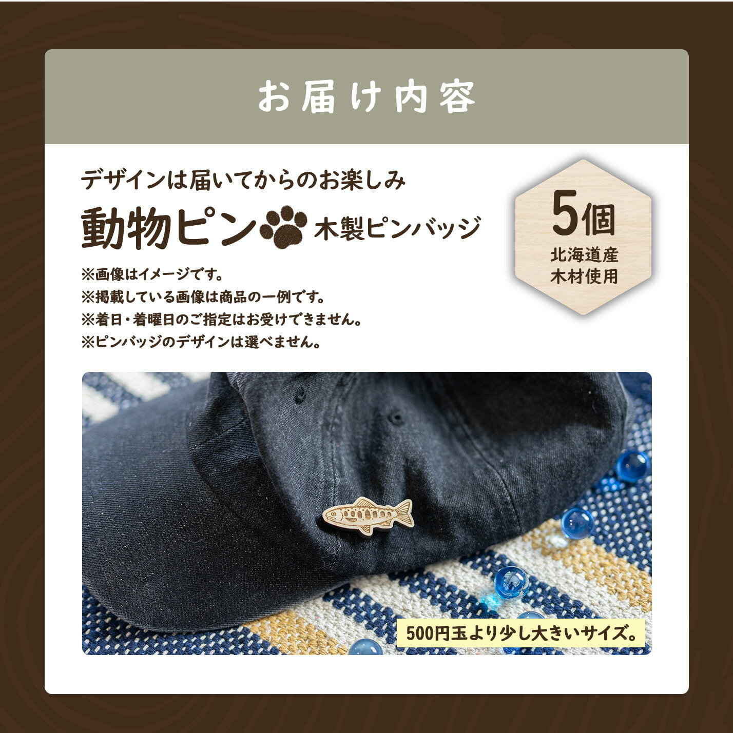 【ふるさと納税】【北海道ニセコ町】クマゲラ製作 デザインは届いてからのお楽しみ動物ピン木製ピンバッジ5個(北海道産木材使用)【50003】