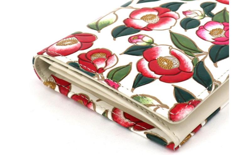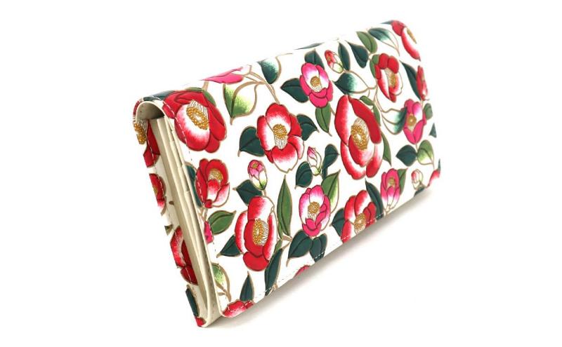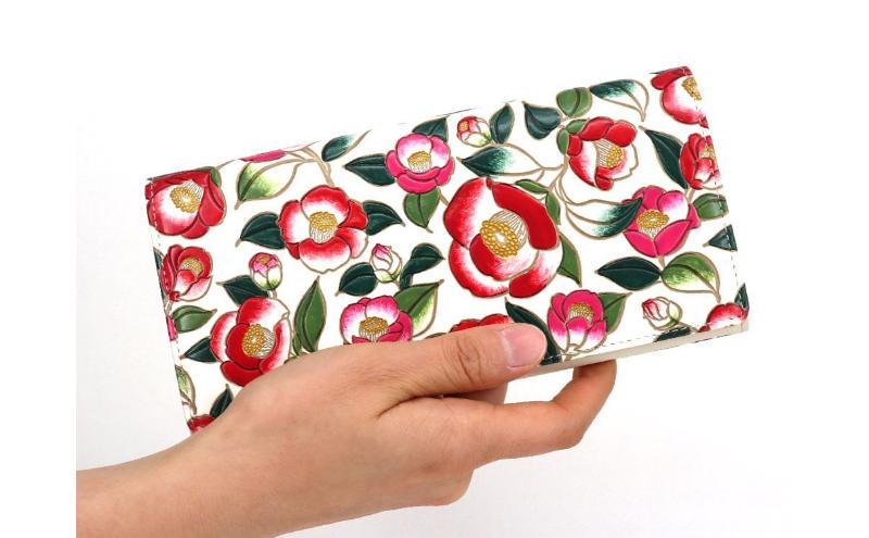 - 【文庫屋大関】束入れ 椿【皮革工芸品】 財布 お札 お札入れ 長財布 カード 小銭 牛革 手作り 日本製 墨田区 東京都