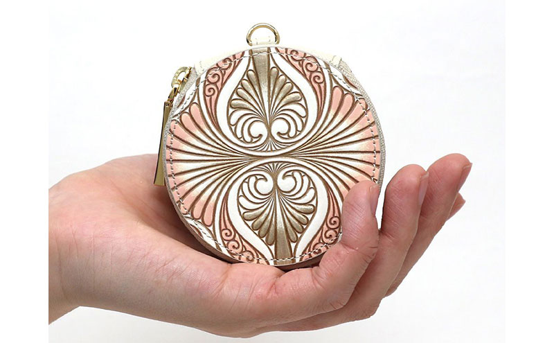 【文庫屋大関】マカロンポーチ ロカイユ<ベビーピンク>【皮革工芸品】 ポーチ ミニポーチ 小物入れ アクセサリー入れ イヤホン入れ 収納 保管ケース 手のひらサイズ 本革 革 皮革 工芸品 工芸 雑貨 ギフト プレゼント 日本製 東京
