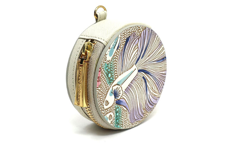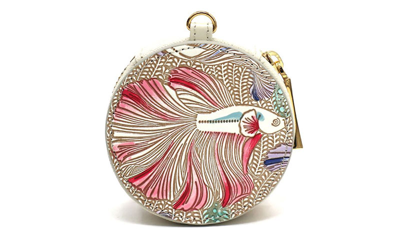 - 【文庫屋大関】マカロンポーチ ラビリンスフィッシュ<パープル>【皮革工芸品】 ポーチ ミニポーチ 小物入れ アクセサリー入れ イヤホン入れ 収納 保管ケース 手のひらサイズ 本革 革 皮革 工芸品 工芸 雑貨 ギフト プレゼント 日本製 東京