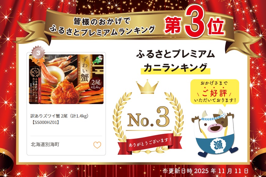 訳ありズワイ蟹 2尾(計1.4kg)【SS000HZ01】