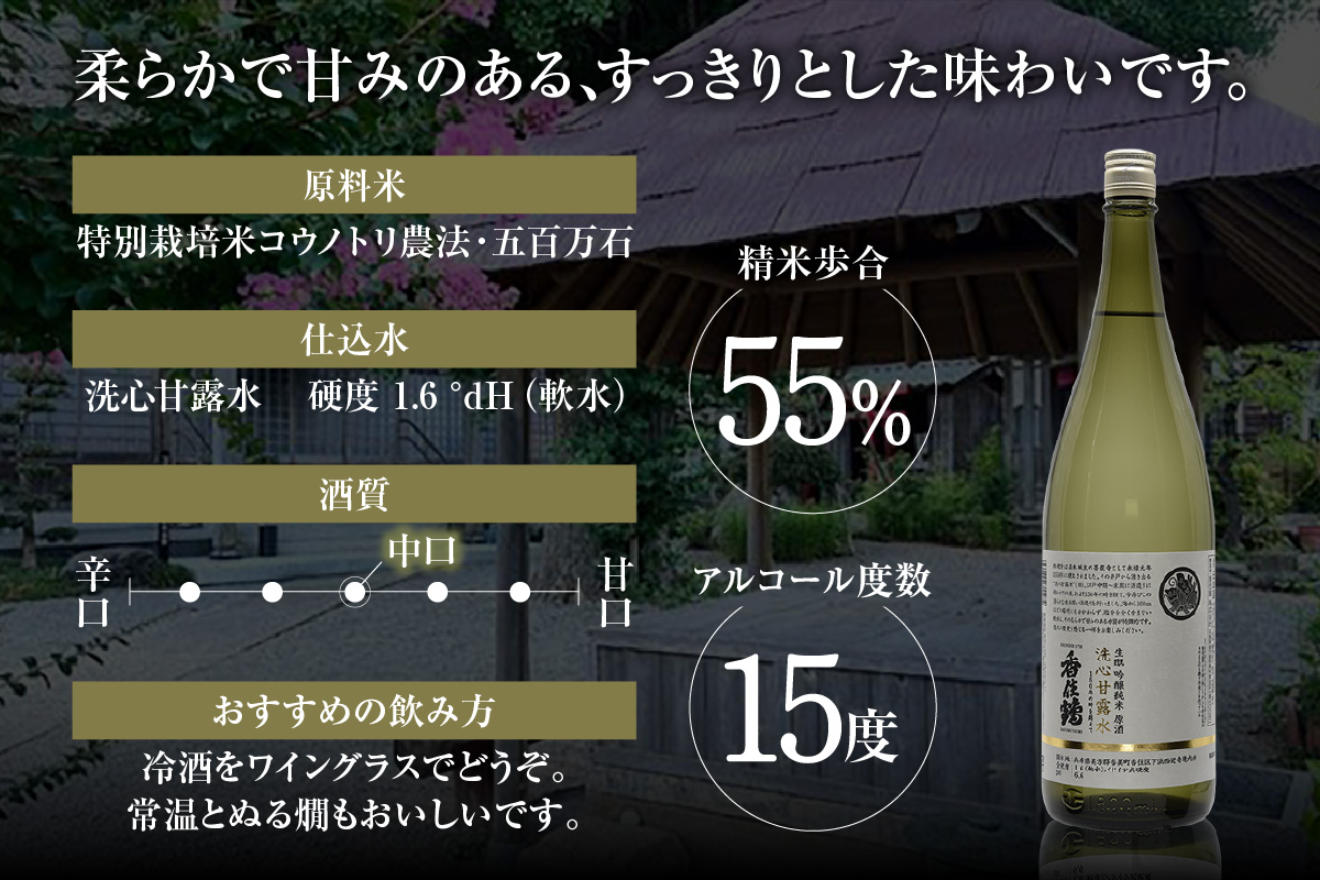 【香住鶴 生酛 吟醸純米 洗心甘露水 原酒 1800ml】日本酒 吟醸純米 常温 お酒 酒 さけ sake アルコール おすすめ プレゼント 贈答 ギフト 兵庫県 香美町 香住 香住鶴 15-22