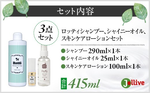 L03-023 ロッティシャンプー290mL、ロッティオイル25mL、フラッフィースキンケアローション100mL(1本ずつ)