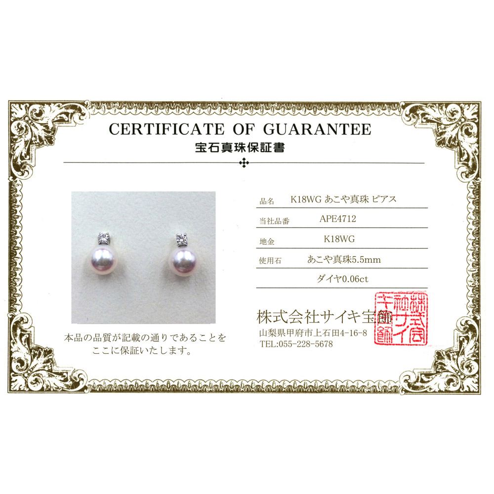 APE4712 K18YG あこや真珠 ピアス