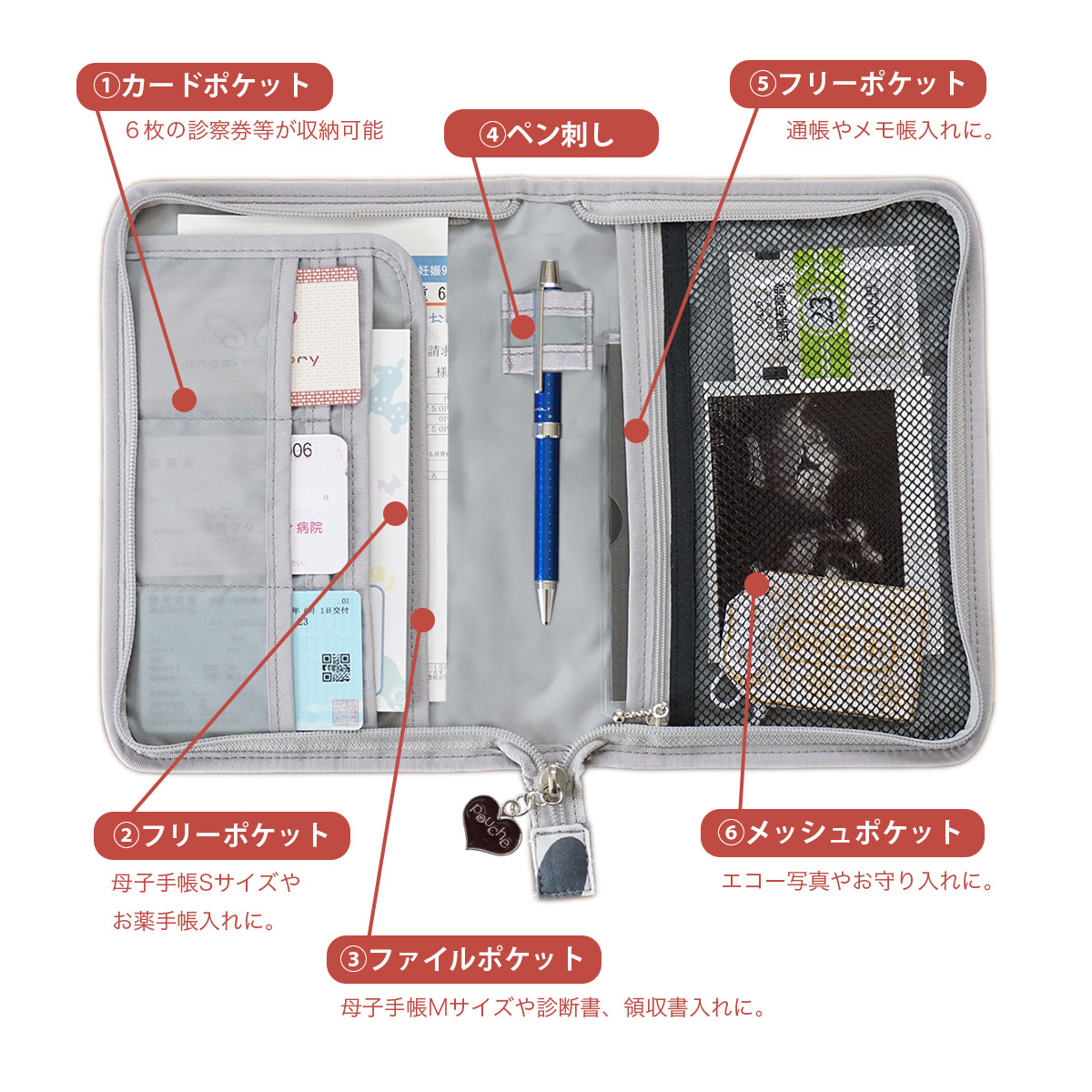 AH124-2 マルチケース (ファスナータイプ) 木の花柄 Lモデル 1個 ブルー【 母子手帳ケース 2人分 花 かわいい おしゃれ 軽量 Pouche ポーチェ 長崎県 島原市 】