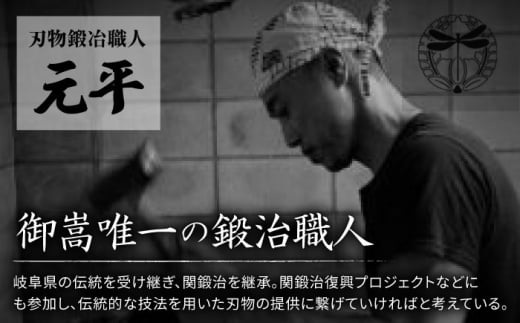 【2】 鍛造ナイフ レザーシース付き 打刃物元治 / 御嵩町 / ナイフ 一点物 野鍛冶 [AVBI002]