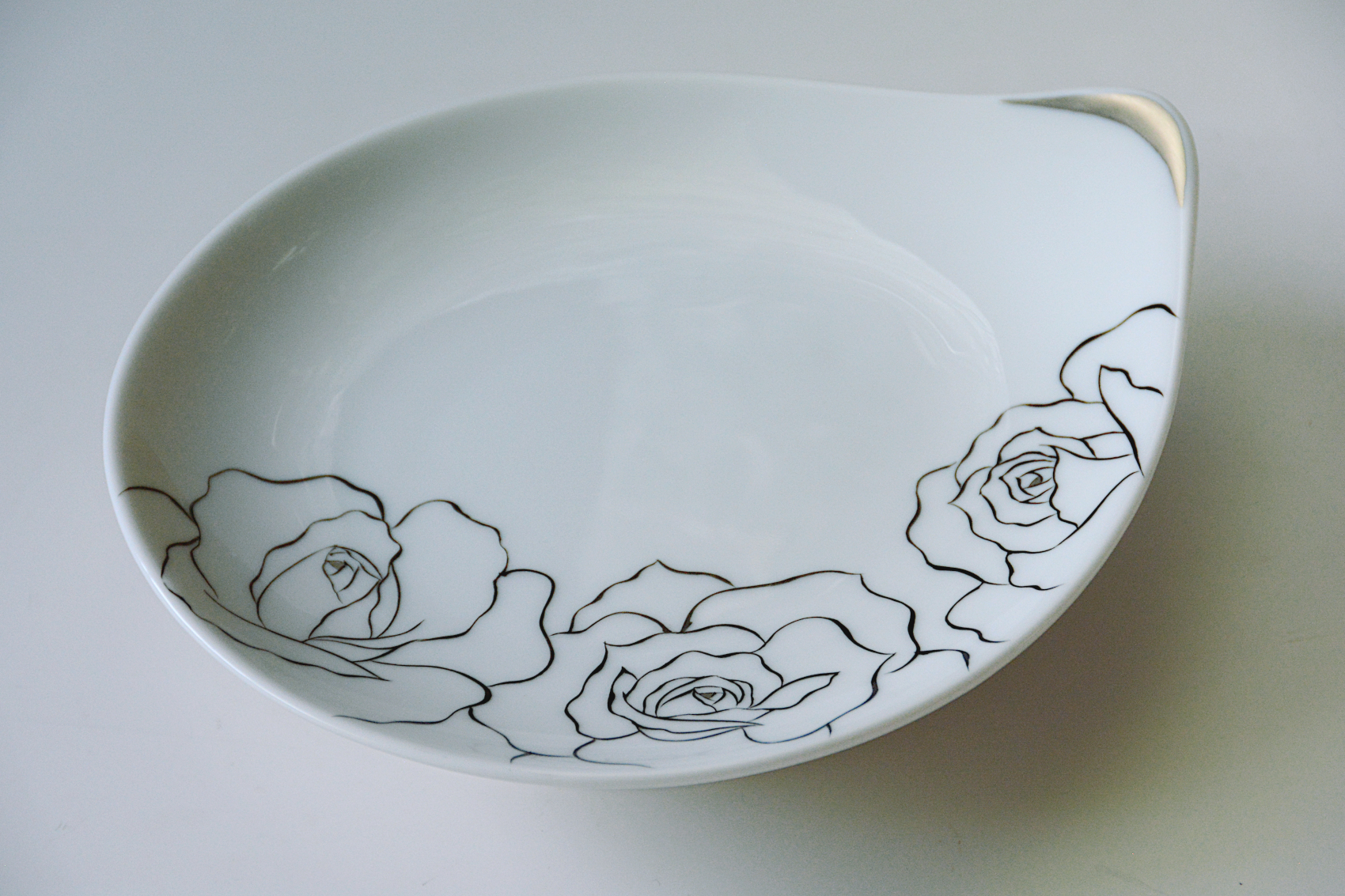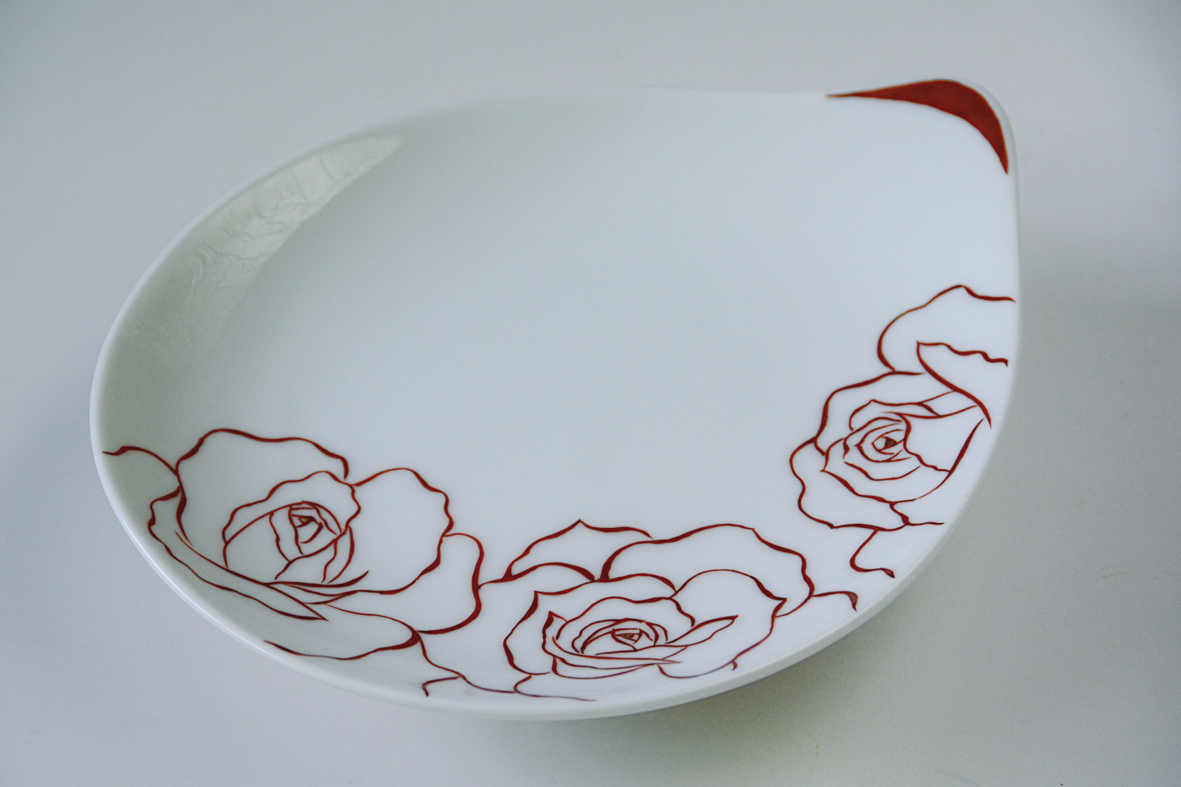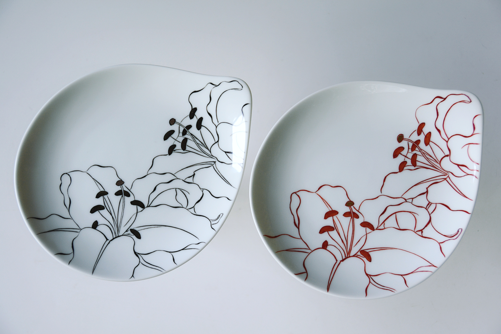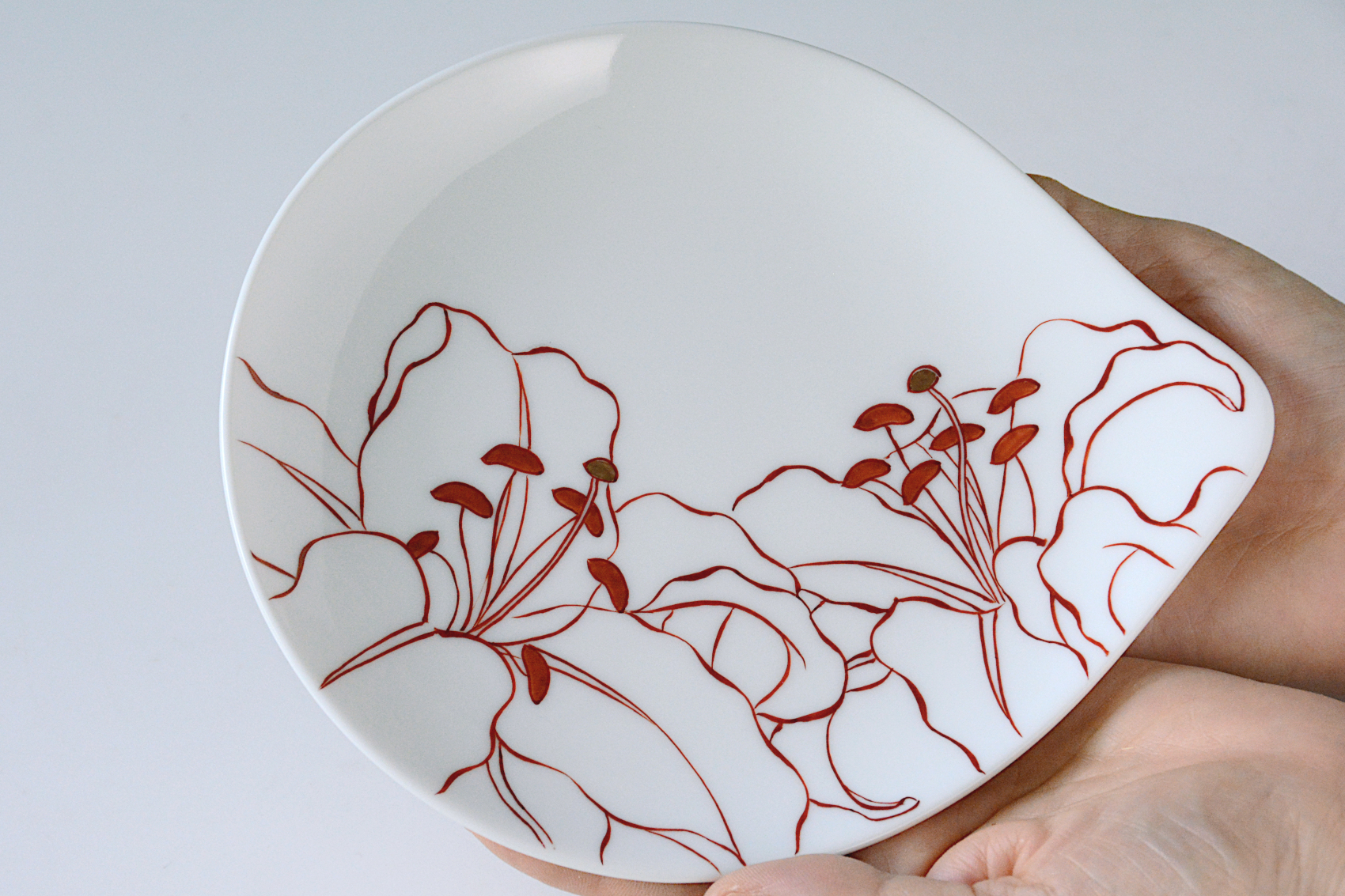 - 【伊万里焼】線描きカサブランカ・バラ変形皿(色・柄選択、どちらか1枚をお届け) 135-H739