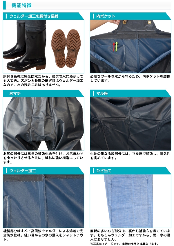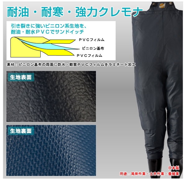 - クレモナ水産 胴付き長靴 10068【サイズ:26.0cm カラー:鉄紺】 / 耐油 耐寒 内ポケット 作業服【logo164】