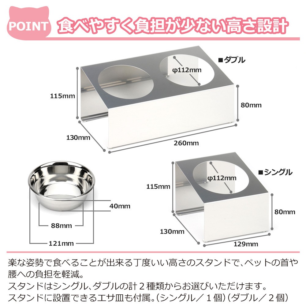 - 1070 ペットフードスタンド 犬用 食器台 ステンレス製 傾斜タイプ ステンレス食器皿 ダブルスタンド PT10-03B-2