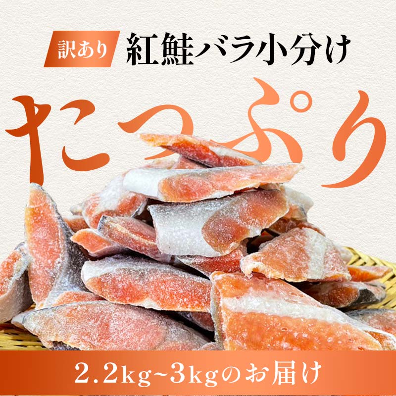 - 【ふるさと納税】訳あり 紅鮭 \容量が選べる/ 約1.3kg・約2kg・約3kg 鮭 打ち身 わけあり しゃけ サーモン 切り身 サケ さけ 塩鮭 規格外 不揃い 端材 切り落とし 冷凍 釧路市 北海道 お弁当 朝食 おにぎり 冷凍 便利 バラ 個別 F4F-8286var