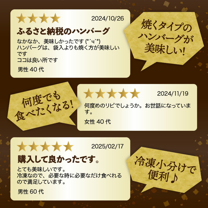 やわらかくふっくら、ジューシーな味わいの佐賀牛入り特製ハンバーグです。120gのハンバーグが20個入りと、大容量の返礼品。賞味期限が180日あるので、冷凍庫に常備しておくのにもおすすめです。レビューを見ると「3回目の申し込みです」など、リピート申し込みをしている人も多く見られます。
