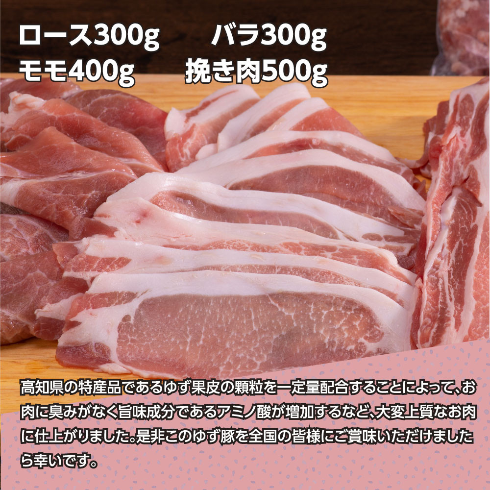 なはりゆず豚セット 1.5kg - 豚バラ ロース モモ 挽き肉 ひき肉 豚 豚肉 国産 詰め合わせ セット 冷凍 料理 おうちごはん 個包装 16000円 高知県産 高知