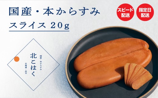 - 国産本からすみ 北こはく スライス20g 国産 無添加 北海道 余市 おつまみ 高級 ギフト プレゼント カラスミ 唐墨 ボッタルガ 魚卵 肴 珍味 日本酒 ウイスキー パスタ お中元 お歳暮 正月 産地直送 お取り寄せ