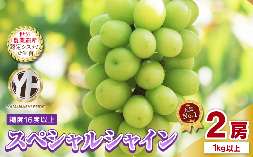 フルーツ王国山梨産厳選 シャインマスカット 2房 (1kg以上)【1108669】