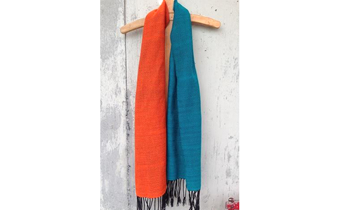 - ito to iro 手染め・手織り仕上「ストール」 ターコイズグリーン×オレンジ・バイカラー(ツイル織り) ファッション小物