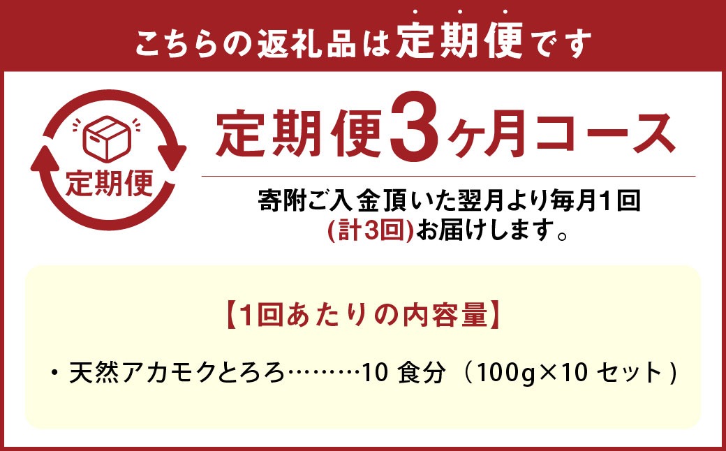 【3回定期便】天草産 天然 アカモク とろろ (100g ×10セット) 合計3kg 海藻 あかもく スーパーフード 無添加 無着色 冷凍 九州産 熊本県 上天草市