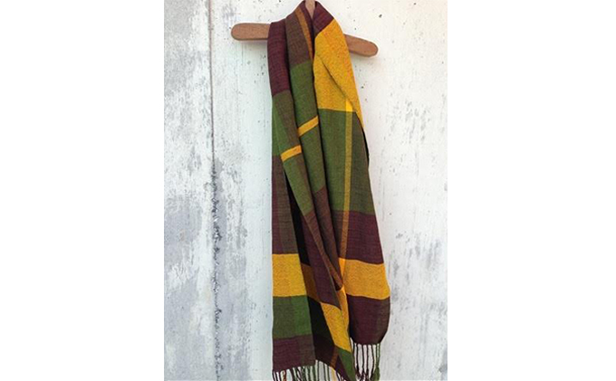 - ito to iro 手染め・手織り仕上「ストール」 カーキ×ブラウン×マスタードイエロー・チェック(平織り) ファッション小物