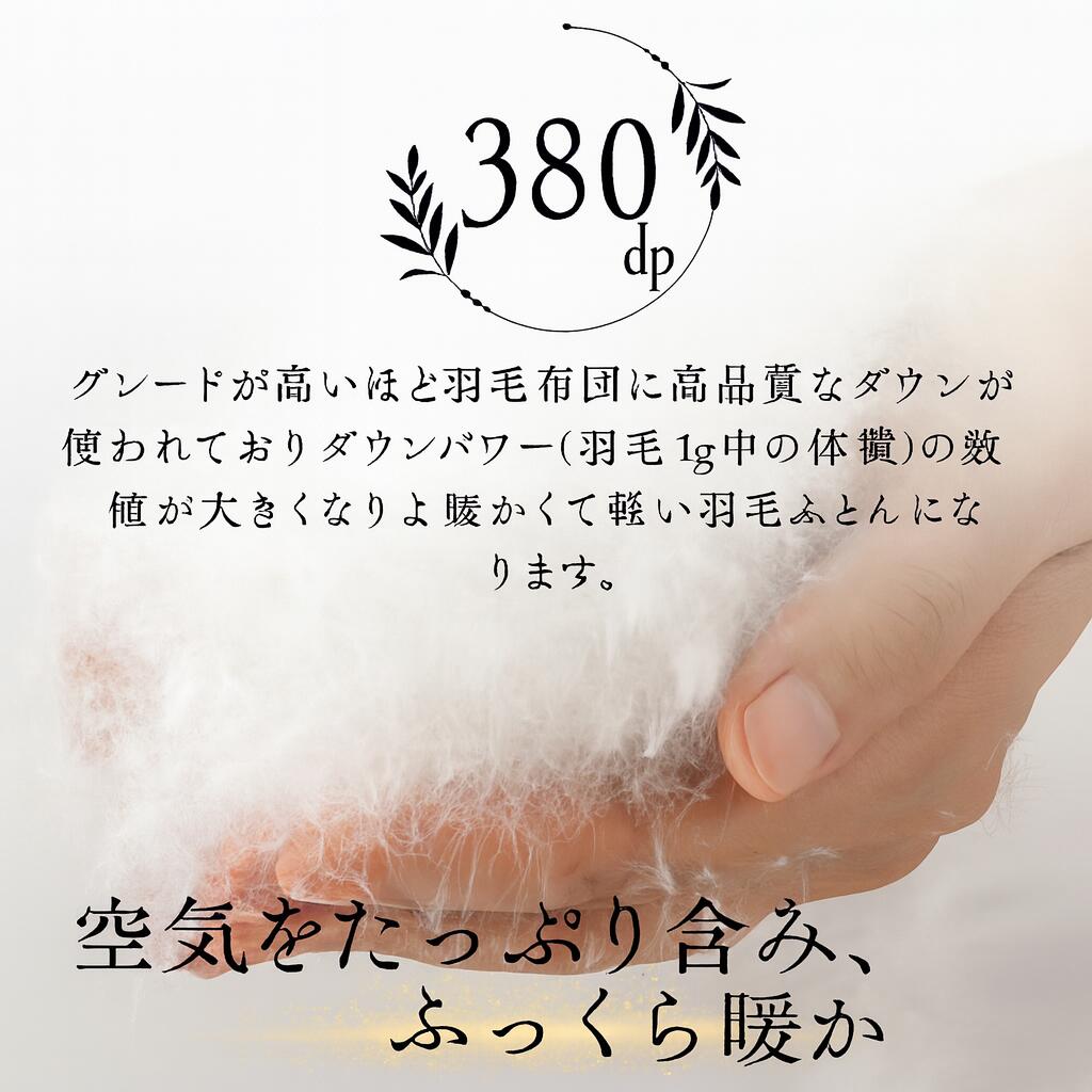 - 【ふるさと納税】羽毛布団 セミダブル 日本製 綿100% ダウン93% 1.4kg 超長綿60番手生地使用 Dp380 立体スクエアキルト 8か所ループ付き ダウンパワー380以上 抗菌 防臭 消臭 パワーアップ加工 かけ布団 肌布団 軽い ふっくら ふんわり ふかふか 爽やか 防ダニ 保温 暖かい