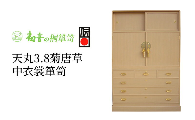 【ふるさと納税】桐たんす 天丸3,8菊唐草 中 衣裳 箪笥 初音の家具 チェスト 衣裳盆 引き出し 和箪笥 衣装ダンス 洋服タンス 着物 着物用 着物収納 洋服 衣類 服 収納 衣類収納 日本製 木製 桐 完成品 インテリア 家具 収納家具 伝統工芸 工芸 大阪 大阪府 岸和田市