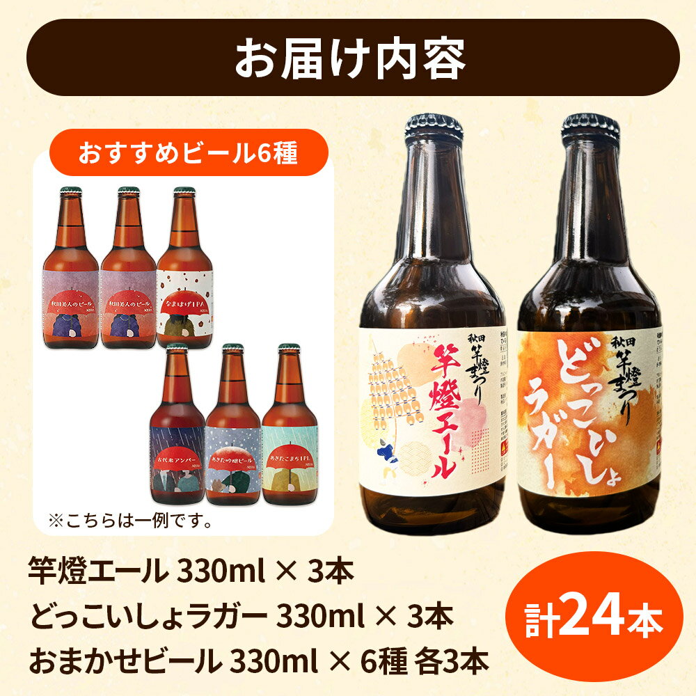【ふるさと納税】【秋田の地ビール】秋田あくらビール 秋田竿燈まつり限定2種+おまかせ6種 飲み比べセット(各330ml×3本 計24本)