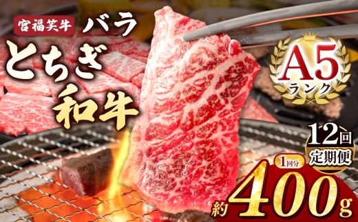 【定期便12回】宮福笑牛(とちぎ和牛) A5 バラ焼き肉 約400g |定期便 牛肉 和牛 焼き肉 やきにく 焼肉 焼肉用 バラ肉 ばら肉 バラ ばら 旨味 美味しい 肉 お肉 栃木県共通返礼品 栃木県 真岡市