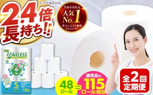 - 【通常エリア】【全2回定期便】トイレットペーパー シングル 長巻き 130m 6ロール×8パック エコ ワンタッチ コアレス《豊前市》【大分製紙】 [VAA088]