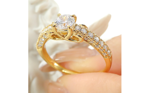 - 指輪 K8YG イエローゴールド ダイヤモンド 計0.63ct【中石 0.3ct VVS1 G Verygood】リボン 結び 和風【ソーティングカード付】ジュエリー【f199-k18yg】※13.5号 ALPAZ125-13_5