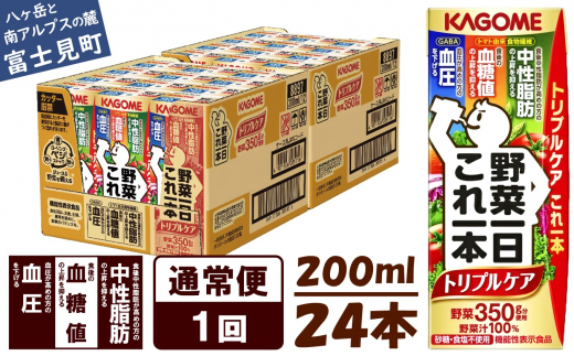 【通常便】 カゴメ 野菜一日これ一本 トリプルケア 24本×1回 〈 野菜ジュース 紙パック 野菜一日これ一本トリプルケア 野菜100% 血糖値 中性脂肪 血圧 高血圧 対策 サポート 機能性表示食品 野菜 100% ジュース 飲料 健康 砂糖 食塩 栄養強化剤 不使用 野菜飲料 ドリンク 備蓄 長期保存 防災 飲み物 かごめ kagome KAGOME 〉