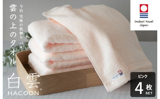 (今治タオルブランド認定)白雲 (HACOON) バスタオル 4枚セット(ピンク)【I000610BT4P】