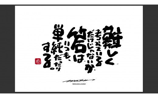 - ID-7.【書道家もーちゃん】もーちゃん額 S/24.難しく、考えているだけじゃないか、答は、いつも、単純だったりする。