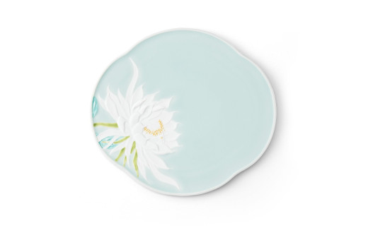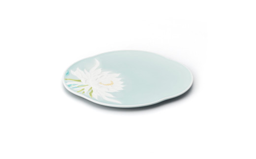- 【伊万里焼】モイスト 色絵月下美人 木瓜プレート 028-H1187