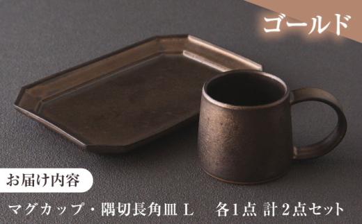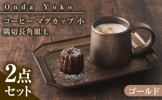 - 【ゴールド】【美濃焼】 恩田陽子 コーヒー マグカップ 小 隅切長角皿 L 各1点セット / JS企画 [AZAZ044]