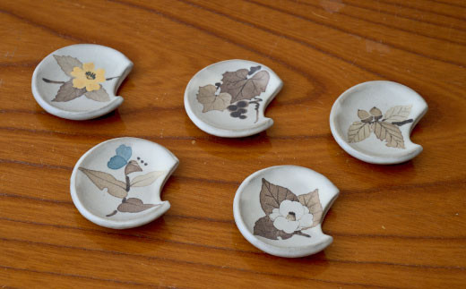 和紙染草花文箸置ペア 【日の隈窯 和紙染 佐賀 陶器 粉引き 鉄絵 窯元 陶芸作家】(H025145)