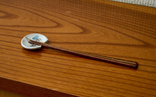 - 和紙染草花文箸置ペア 【日の隈窯 和紙染 佐賀 陶器 粉引き 鉄絵 窯元 陶芸作家】(H025145)