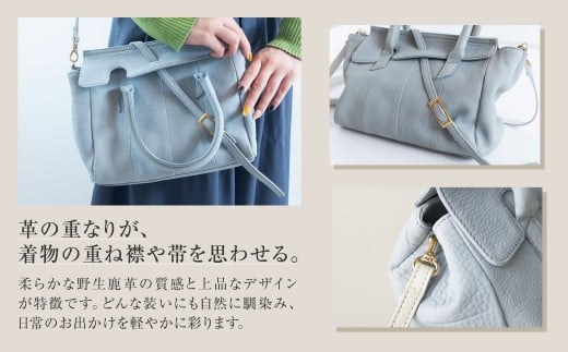 【G0064a】OBI MINI(革のカシミヤ 郡上市産明宝鹿革バッグ)ブルーグレイ バッグ 小物 ブランド雑貨 財布 ケース メンズ財布 190000円