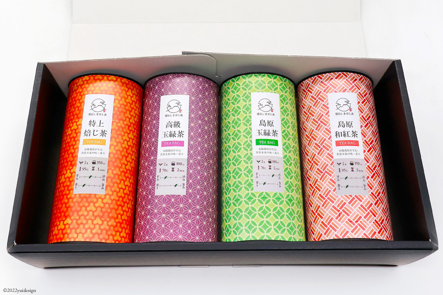 - AG072「雲仙しまばら茶」ティーバッグ4種セット (高級玉緑茶 & 玉緑茶 & 特選焙じ茶 & 和紅茶 各2g×15個入り)