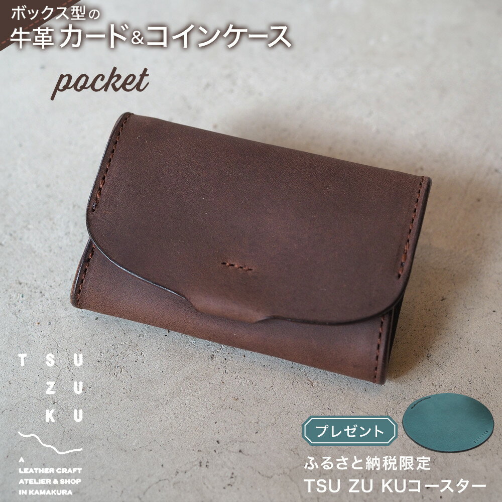 【ふるさと納税】ボックス型の牛革カード&コインケース「pocket」ふるさと納税限定「TSU ZU KUコースター」 | 雑貨 ファッション 人気 おすすめ 送料無料
