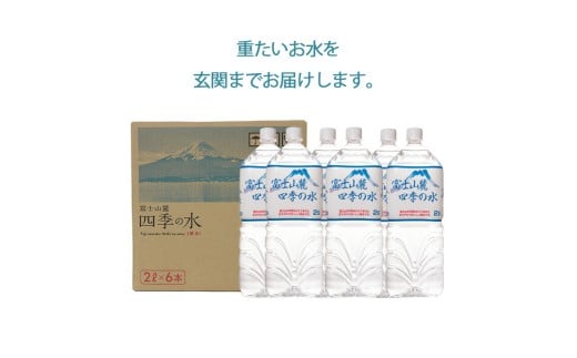 - 【3ヶ月定期便】水 富士山麓 四季の水 2L(6本入) 1ケース 富士山 の 天然水 を使用 ミネラルウォーター バナジウム お水 軟水 飲料 飲料水 ペットボトル 消耗品 備蓄水 防災 災害対策 非常用 人気 まろやか おいしい 送料無料 山梨県 西桂町【n0603-t01_fpr】