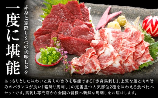 赤身 霜降り 馬刺し 食べ比べ 300g (専用醤油付き150ml×1本) 桜屋《30日以内に出荷予定(土日祝除く)》送料無料 肉 馬肉 馬さし 霜降り 赤身
