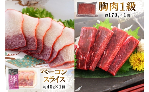 AJ149 美味しい 鯨 3種詰め合わせAセット 計440g ( 胸肉 背肉 ベーコンスライス ) [ くじら クジラ 鯨肉 湯引き 簡単調理 おつまみ 肴 珍味 日野商店 長崎県 島原市 ]